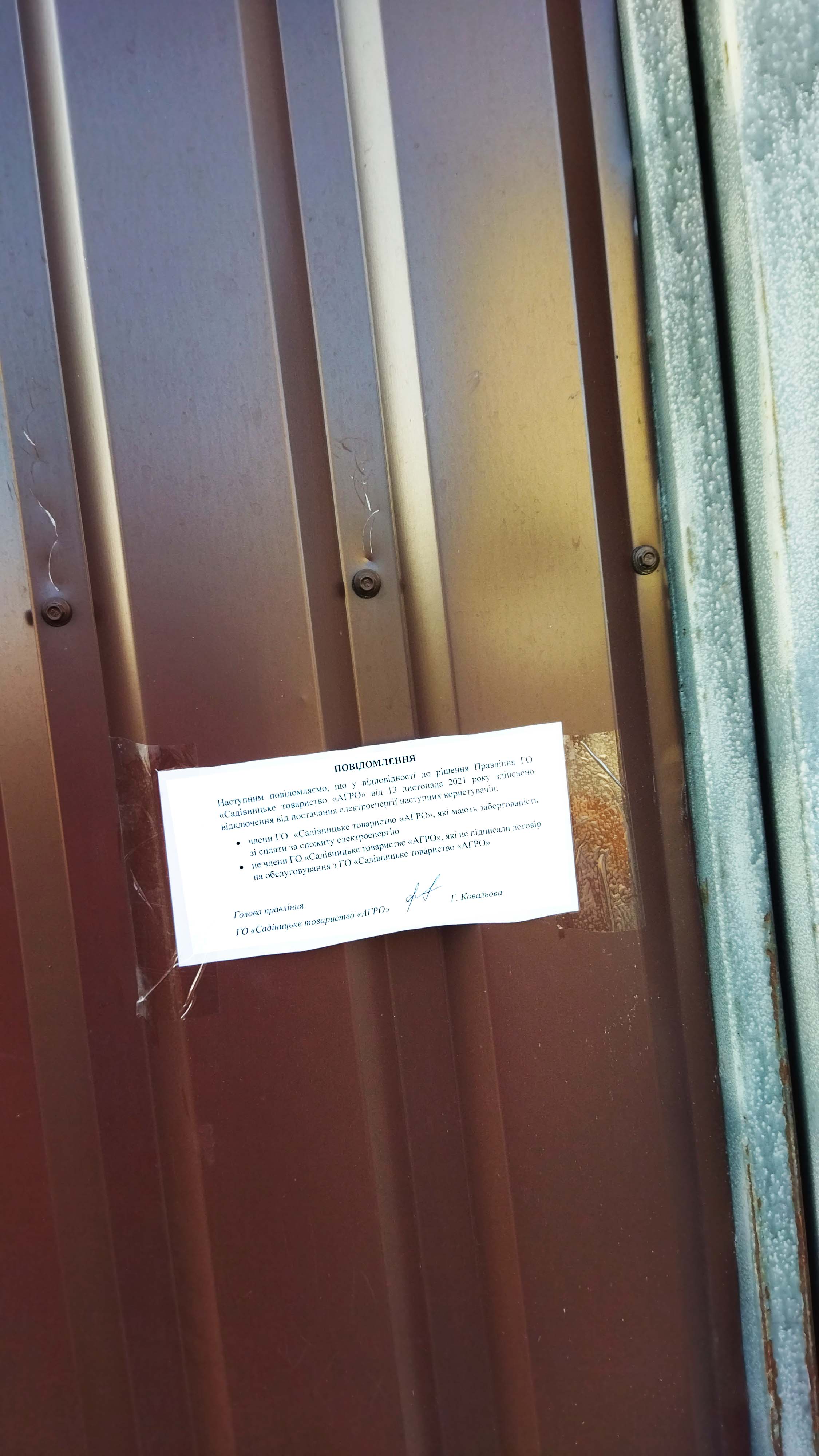 ділянки №618 (Марченко) і №623 (Сторожик) відключені від електромереж Товариства Агро 13 листопада 2021р.